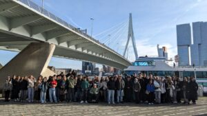 Am Dienstag fuhren wir nach Rotterdam und lernten die Stadt bei unserer Hafenrundfahrt vom Boot aus kennen . Wir sahen die berühmte Erasmusbrücke und zahlreiche andere Sehenswürdigkeiten. Als Hafenstadt ist Rotterdam weltweit berühmt. Aufgrund der Hafenlage hat die Stadt eine lange Einwanderungsgeschichte, welche im Fenixmiseum von einer Schülergruppe genauer betrachtet wurde. Die Freizeit verbrachte die Mehrheit in und um die bekannte Markthal.