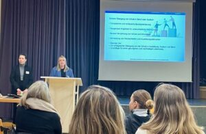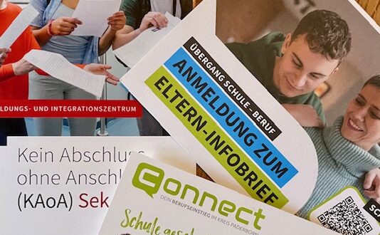 Im Anschluss stellten Frau Möller und Frau Blaue von der Koordinationsstelle des Kreises Paderborn die Standardelemente des Programms KAoA – Kein Abschluss ohne Anschluss vor. Ein zentrales Element ist der Berufswahlpass, der als roter Faden durch die gesamte Orientierungsphase dient. Der Berufswahlpass unterstützt die Jugendlichen dabei, ihre eigenen Interessen, Stärken und Entwicklungsmöglichkeiten zu dokumentieren, Termine und Angebote festzuhalten und somit den Überblick über den Prozess der Berufswahl zu behalten.