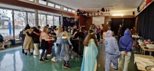 Gut gelaunt ging es pünktlich um 13.45 Uhr mit einer Aufwärmrunde im Stopptanzen los. Bevor die Party so richtig durchstartete, sorgte die SV mit Hot Dogs, Berlinern, Knabbereien und Limo für das leibliche Wohl der Polizist*innen, Pirat*innen, Sportler*innen und der viele fantastischen und tierischen Wesen. Bei einem abwechslungsreichen Programm mit Tanzspielen wie der Reise nach Jerusalem, dem allseits beliebten „Simon says…“, der Prämierung des besten Kostüms und anderer Spiele verbrachten alle einen tollen Nachmittag.